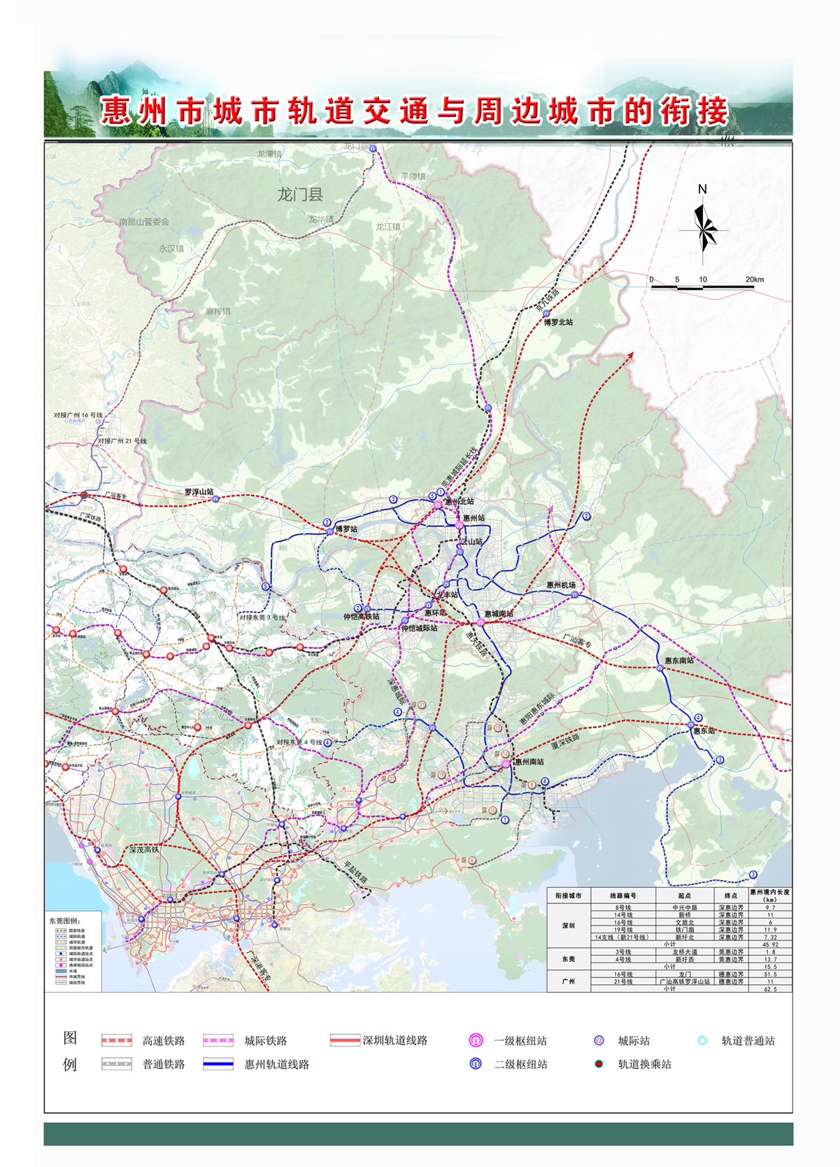 预留广州16号线延伸到惠州龙门县城和21号线延伸到惠州博罗罗浮新城等2条线路通道。